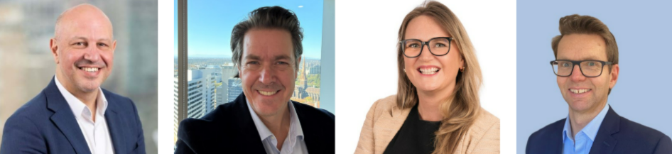 Tony Cuda, Team Super; Callum Tod, HESTA; Hayley Powell, Brighter Super & Andrew Reeve, Cbus Super winners of MBS Scholarships.